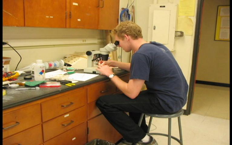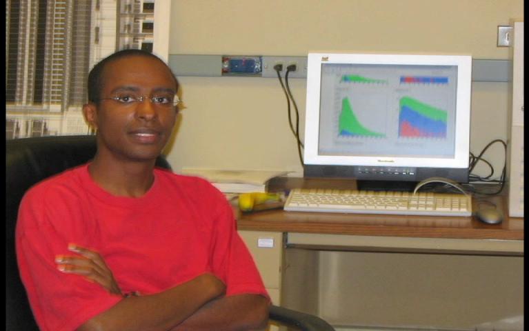 (Students' names link to their final papers. There are some formatting problems, particularly with figures, but you can still get a lot more detail about the projects from them.) Condensed Matter ExperimentDexter Nigos (Hartnell College; advisor Kai Liu) made arrays of Cobalt nanodots, 200-400nm diameter and 20-100nm thick, with pulsed electrodeposition. Hard disks store information in the magnetization, with each bit corresponding to a small region on the disk. Making bits physically smaller allows more storage space on a disk, and can improve disk speed as well. However, smaller bits need to exhibit significant hysteresis (memory) so that they hold a magnetization after the field that creates (writes) it is removed. Understanding the ways in which magnetic reversal occurs in small dots is important for incorporating smaller bits into hard drives. After preparing the samples, Dexter characterized both their geometry and magnetic properties. He found mainly single domain magnetism in the nanodots. A scanning tunneling microscope (STM) can take atomic-scale images or metal surfaces. Examining the initial, intermediate, and final molecules during a chemical reaction will improve the molecular-level understanding of the process, for example by determining the binding sites for the different molecules. Stephanie Sears (Eastern Michigan University; advisor Shirley Chiang) worked on an early stage of an experiment to study benzene formation on a Palladium surface, using a silicon sample to calibrate the STM. With a different STM, Stephanie looked for domain periodicities in a Germanium sample. The measurements required cleaning the sample many times, a tricky procedure that can easily damage or melt it. The sample showed atomically flat terraces, but was destroyed not long after that. Further data await a new sample. Nick apRoberts-Warren (Wheaton College; advisor Rena Zieve) assembled experimental cells consisting of a fine wire stretched inside a metal cylinder, terminating on a large bump. Theoretical work on defects on curved surfaces suggested that a superfluid helium vortex might pin to the edge of the bump rather than its center. Nick began by calculating what shape bump would best let us measure the effect, then spent several weeks learning to make, put together, and leak check the cell parts. Data acquisition from his two successful cells happened mere days after Nick left Davis. Measurements on vortex stability did provide evidence that the vortex terminated at the edge of the bump. Patricia Voll (University of Washington; advisor Rena Zieve) also worked on superfluid helium vortices, using a fine wire to detect their motion. Patricia added a heating coil to a previously built setup. The original idea was that much of the interaction between a moving vortex and the wall of the container might be through small bits of other vortices stuck to the wall. If heating the cell walls could eliminate the vortex bits, subsequent vortex motion might have a markedly different character. Patricia began by measuring the thermal energy required to depin the primary vortex from the wire. These experiments revealed an unexpected history dependence to the depinning, which we spent the rest of the summer trying to understand. The measurements also proved useful as a sort of control for Nick's curvature experiment. Victoria Winbow (Trinity University; advisor Rena Zieve) wrote code in IDL to select regions of a granular pile and measure the grain density within each region. Furthermore, since granular research requires good statistics, her program can identify analogous areas in a series of piles, and calculate the density for each. The project's goal was to build on last summer's observation of a correlation between the density of a pile and its angle immediately before an avalanche. Victoria worked on identifying which portions of a pile have densities correlated with stability; this will show which areas are most important for the pile's stability. As the sampled regions shrink, adequate data requires more avalanches. Future students will continue the work, beginning by acquiring more avalanche data.