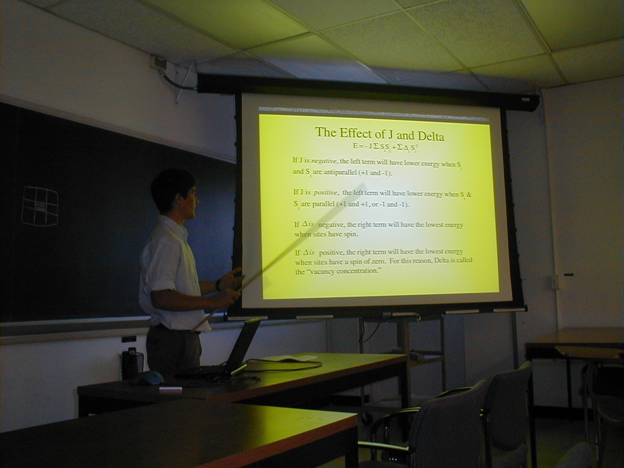 Twelve students (6 women, 6 men) participated in the UC Davis Physics REU in summer 2005. ![]() Research Projects (more details)Projects were in Condensed Matter Experiment and Theory, Biophysics, High Energy Experiment, and Cosmology.Field Trips (more details)The five field trips in 2005 were a visit to San Francisco, a tour of the Crocker Cyclotron on the Davis campus, a tour of the Stanford Linear Accelerator Center followed by camping and hiking in Big Basin Redwoods State Park, a trip to Lawrence Livermore National Laboratory , and an overnight stay at Lake Tahoe. Some REU participants also arranged their own trips to Yosemite and Big Sur.PresentationsEach student gave a 15-minute presentation, with 5 minutes for discussion. The entire physics department was invited to attend. The presentations took place over two afternoons near the end of the program.![]() |