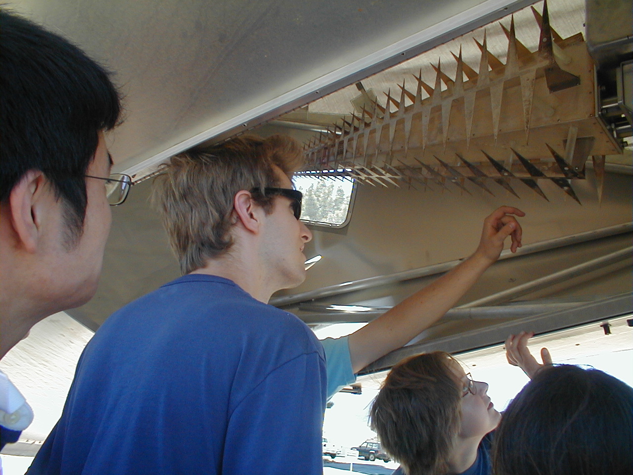 Hitachi Global Research/Stanford Linear Accelerator CenterHitachi recently purchased the magnetic storage portion of IBM's famous research labs. We visited Hitachi's new research building, which has been in use less than one year. Several scientists took time to explain fabrication and measurement techniques to our group, and we also saw some of the research facilities. From Hitachi we headed to the Stanford Linear Accelerator Center (SLAC), about half an hour away. Measurements there have resulted in three physics Nobel Prizes: for the discoveries of the charm quark and the tau lepton, and for understanding how quarks combine to make protons and neutrons. We saw an old particle detector, about three stories high, and the mile-long klystron building above the accelerator tunnel. Four decades after it first turned on, SLAC's linear accelerator remains the longest in the world. It now feeds the storage rings of an electron-positron collider for experiments on charge-parity symmetry breaking. ![]() Hat Creek Radio Observatory/Lassen Volcanic National ParkThe telescope array at Hat Creek Radio Observatory, run by UC Berkeley, serves two purposes: searching for signals from other intelligent life in the universe, and doing radio astronomy research. Our tour guide opened up one of the dishes to show the toothed detector within, with different sized teeth responding to different frequencies. The isolated location of the observatory is a deliberate attempt to reduce man-made radio interference. Cell phone signals, for example, not only can overwhelm true astronomical signals but also can damage the electronics within an opened dish.![]() ![]() After hiking through a hydrothermal area in Lassen Volcanic National Park with mudpots and boiling lakes, we camped near Summit Lake. On Sunday morning about half the group rose early and hiked to the 10,457-foot peak of Mount Lassen, an active volcano. Starting the climb at 7:30 in the morning was definitely a good idea. We passed no one on our way up, but over 80 hikers were going up as we made our way down! The rest of the group spent the morning by Summit Lake. In the afternoon we hiked up Brokeoff Mountain, with some people stopping partway up at Forest Lake. (Hiking two mountains in one day came about from a last-minute change of plans. Doing both was very strenuous, but only a few people summitted both peaks.) ![]() ![]()
