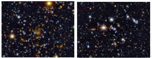 Candidates for galaxy clusters that pass (left) or fail (right)
