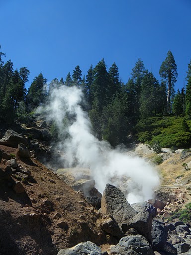 Hat Creek Radio Observatory and Lassen Volcanic National ParkThe telescope array at Hat Creek Radio Observatory, run by UC Berkeley, serves two purposes: searching for signals from other intelligent life in the universe, and doing radio astronomy research. Our tour guide opened up one of the dishes to show the toothed detector within, with different sized teeth responding to different frequencies. The isolated location of the observatory is a deliberate attempt to reduce man-made radio interference. Cell phone signals, for example, not only can overwhelm true astronomical signals but also can damage the electronics within an opened dish.![]() ![]() At Lassen we ascended Cinder Cone, which feels like climbing a 700-foot-tall sand dune. On our way back to the campsite we stopped to swim, wade, or dabble feet in Butte Lake. The next day we hiked through some of Lassen's lush scenery (below left) to the hydrothermal areas in the southeastern portion of the park (Terminal Geyser, below right); even in mid-July, the larger and better-known hydrothermal region in the western part was still inaccessible because of snow! ![]() ![]()