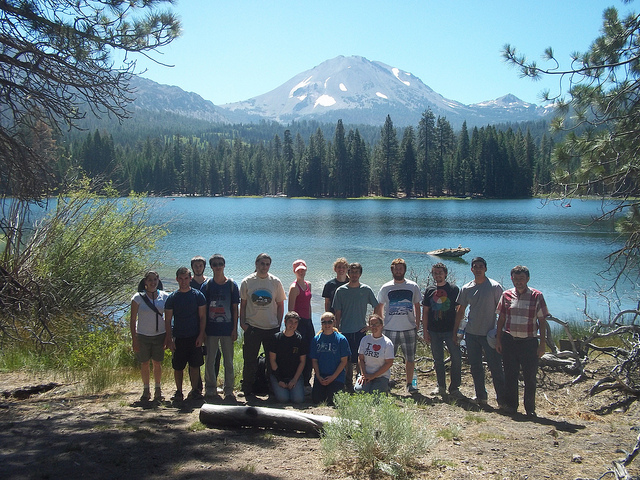 Lake TahoeProfessor Chiang and her husband kindly hosted the entire REU group at their home in Squaw Valley, just north of Lake Tahoe. The trip began with a visit to the Tahoe Environmental Research Center, followed by time at the beach. We then had great viewing of the Perseids meteor shower. On Sunday people split into two main groups, one biking along the path at the edge of the lake and the other hiking to a nearby small lake and swimming in it. A few students opted to enjoy the scenery from the house itself.